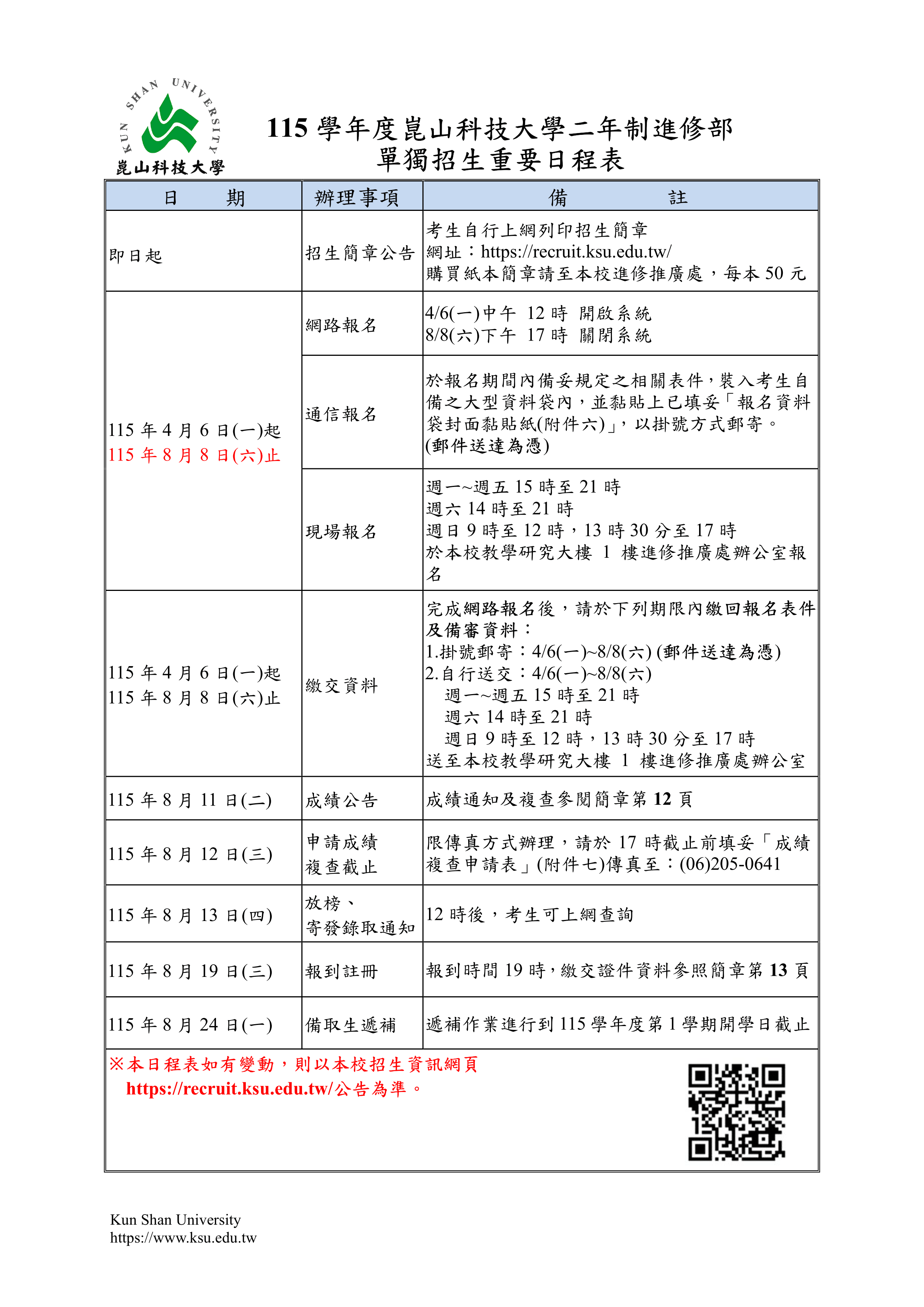 115二技進修部招生簡章